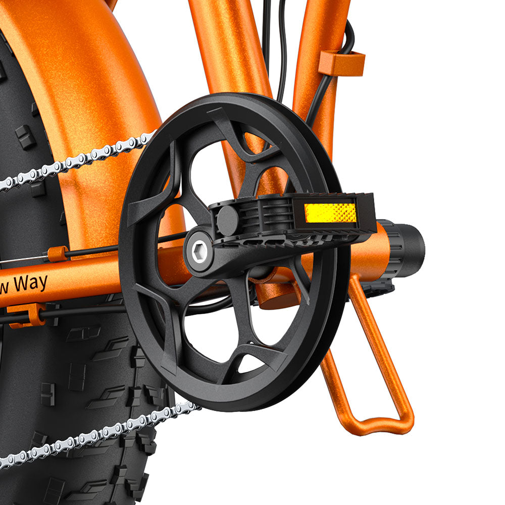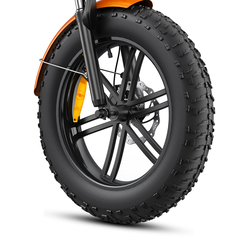 The E-bike adopts an excellent aluminum alloy frame, high toughness, and strong corrosion resistance feature. The front fork is made of high-strength carbon steel and packed with premium comfort shock absorption. With the lightweight and efficient design, the Aluminum alloy 20-inch wheel is suited to both urban and trail environments.