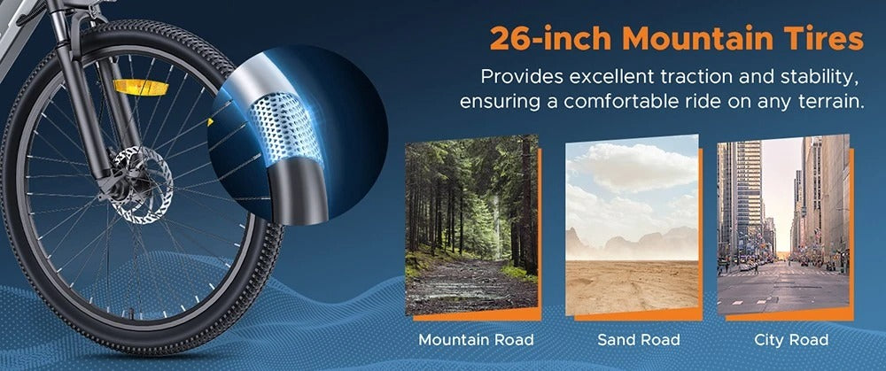 • The 26*1.95 inch tires provide excellent traction and stability, ensuring a comfortable ride on any terrain.