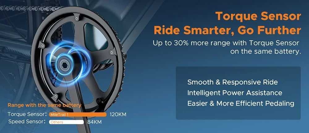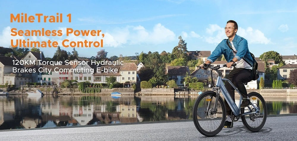 • HillMiles MileTrail 1 city electric bike is equipped with a 36V 13Ah battery, you can ride up to a max of 120km in PAS mode.