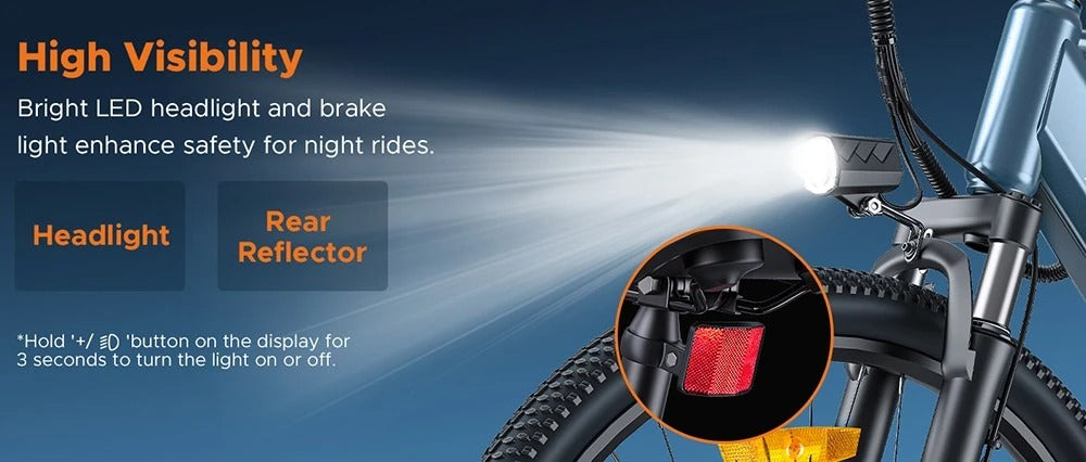 • LED headlight and rear reflector are featured for safer riding, making you safe for night riding.